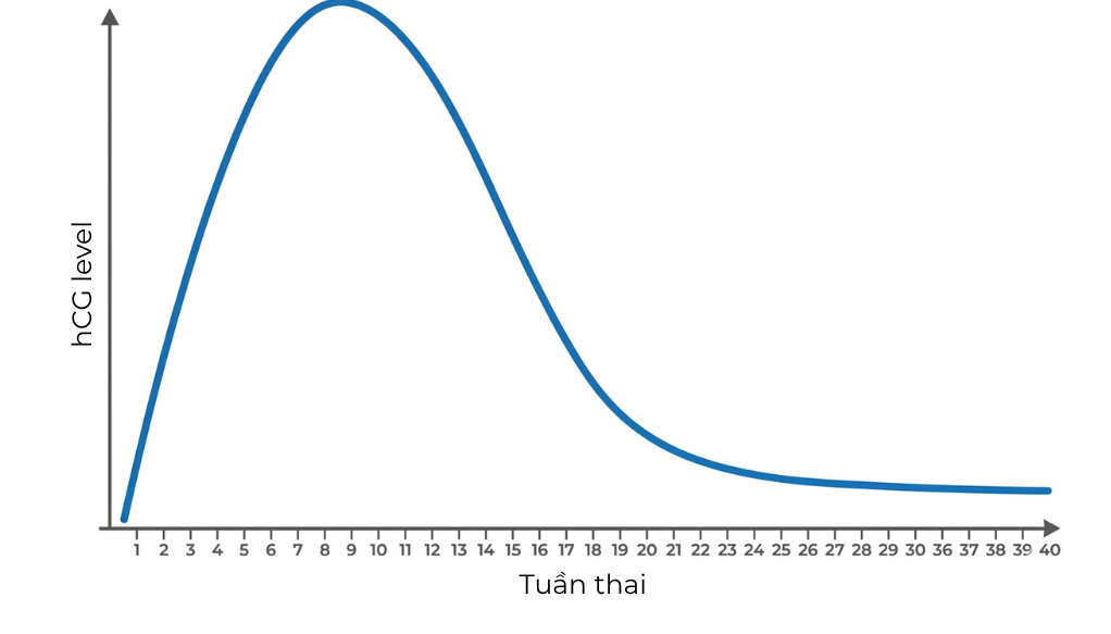 Theo số liệu lâm sàng, nồng độ hCG tăng nhanh và theo cấp số nhân, thường tăng gấp đôi sau mỗi 2 ngày và đạt đỉnh ở tuần thứ 8-10 (khoảng 100.000-200.000 mIU/mL trong máu) của thai kỳ, sau đó, nồng độ này giảm dần.